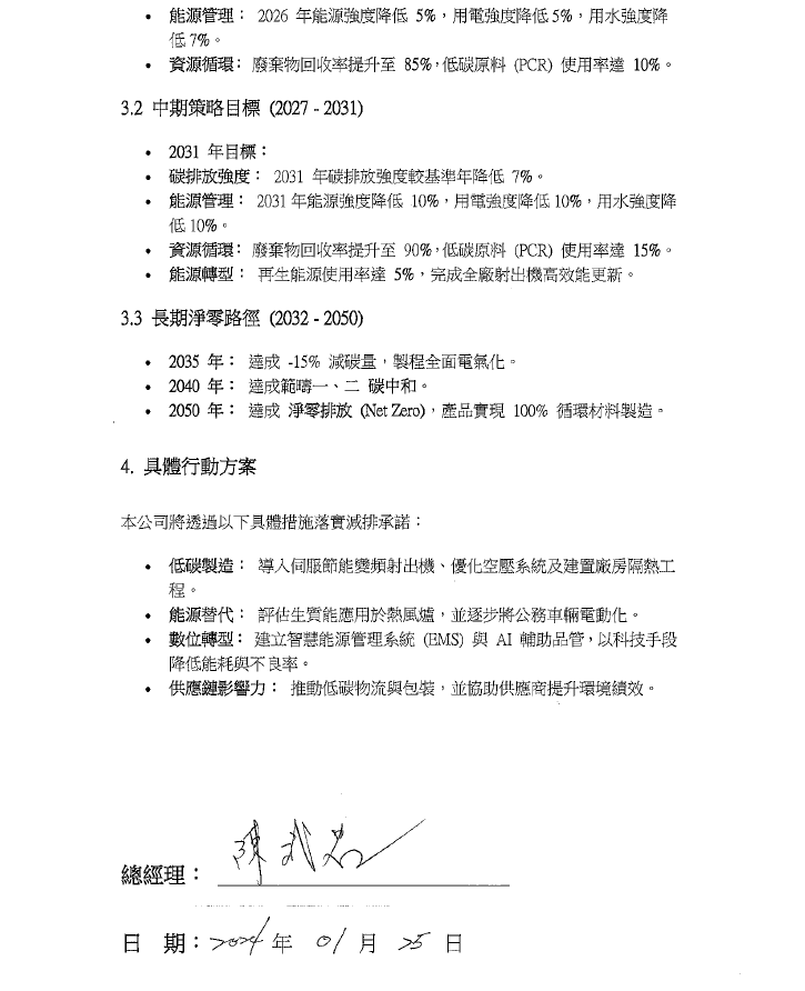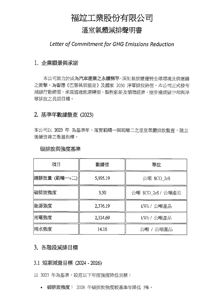溫室氣體減排聲明書